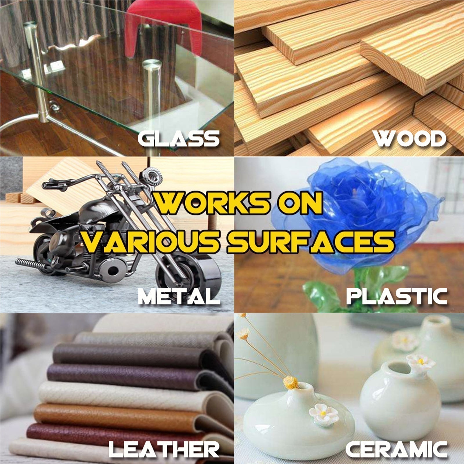 Voidaan käyttää liimaamaan kumi, muovi, posliini, lasi, metalli, puu, nahka ja muita käsityömateriaaleja.