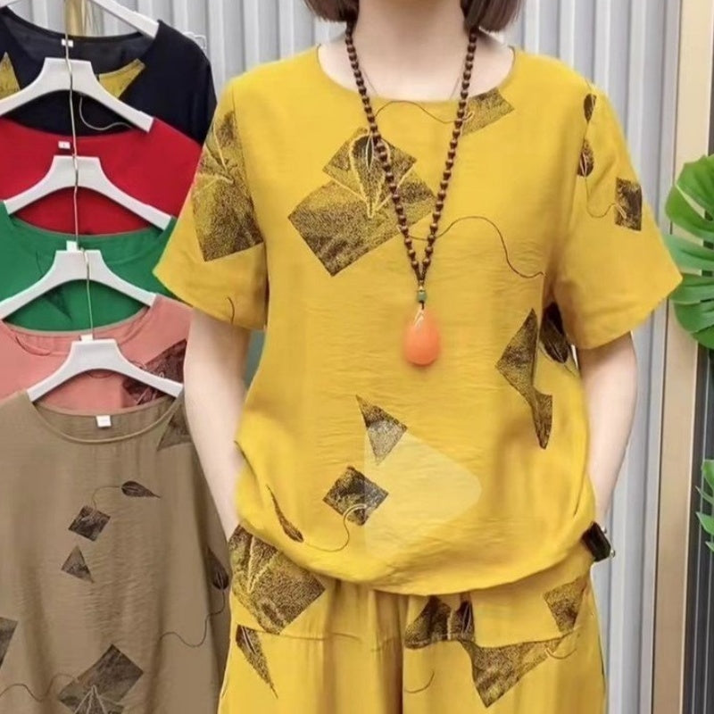 💖Naisten painokuvioinen T-paita & Cropped-housut -setti